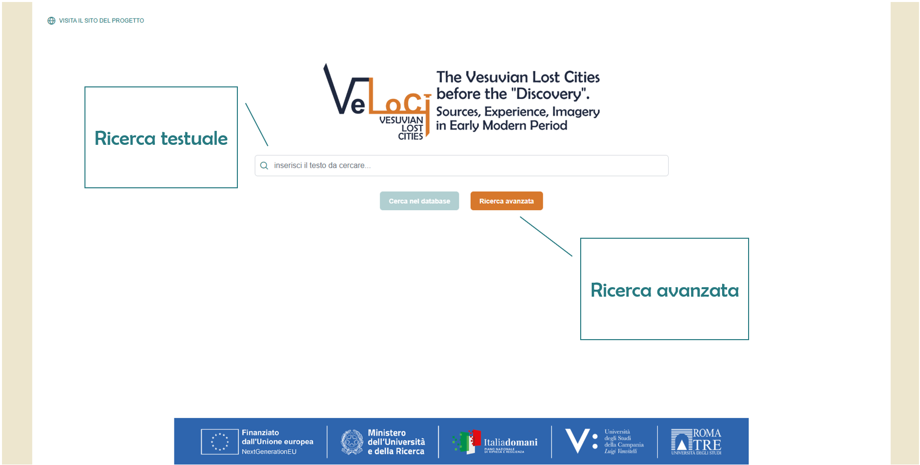 Il database del progetto VeLoCi è accessibile dal sito web del progetto (velociproject.org) cliccando sul pulsante “ESPLORA I DATI”.